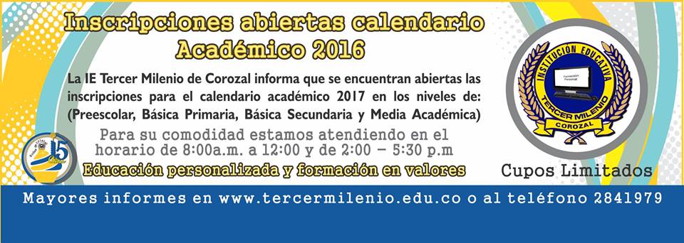 La Institución Educativa Tercer Milenio es un ente de carácter privado, la cual proporciona una sólida formación ética y moral fomentando la práctica del respeto a los derechos humanos, formar la personalidad y la capacidad de asumir con responsabilidad y autonomía derechos y deberes mediante acciones estructuradas de integralidad del ser.